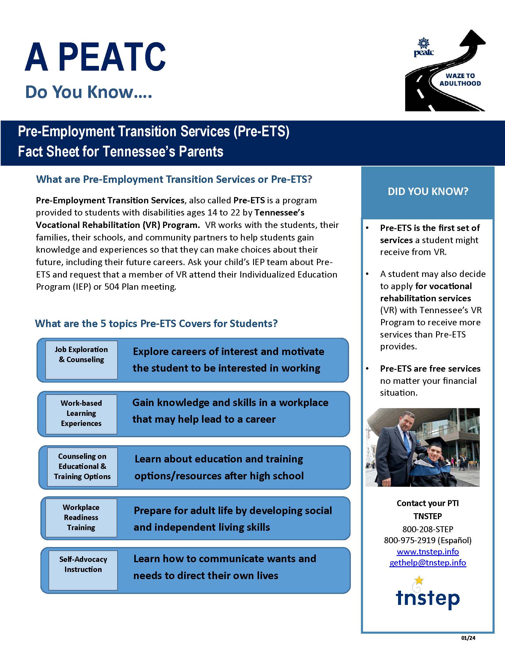 Pre-Employment Transition Services (Pre-ETS) Fact Sheet for Tennessee’s Parents (WAZE to Adulthood)
